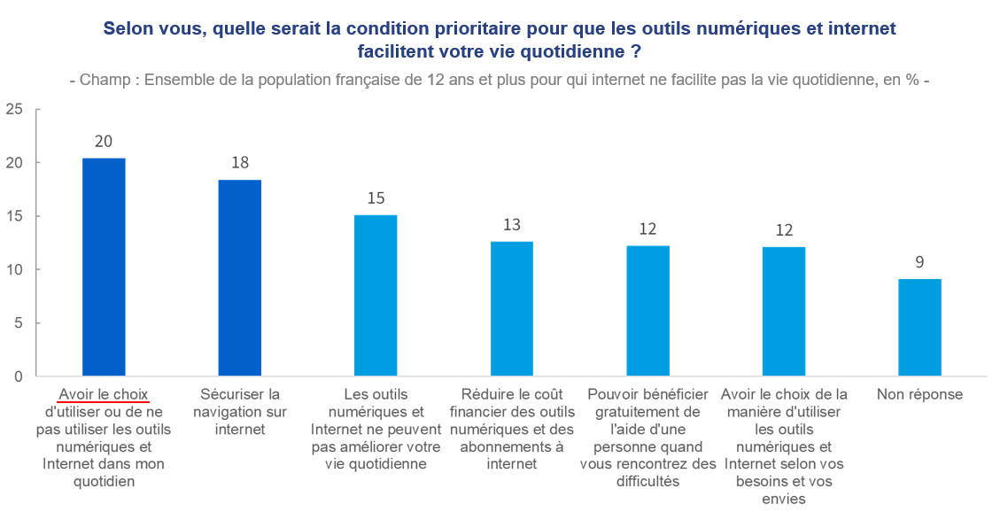 20 % voudraient avoir le choix de recourir au numérique ou pas, 18% aspirent à une sécurisation de la navigation